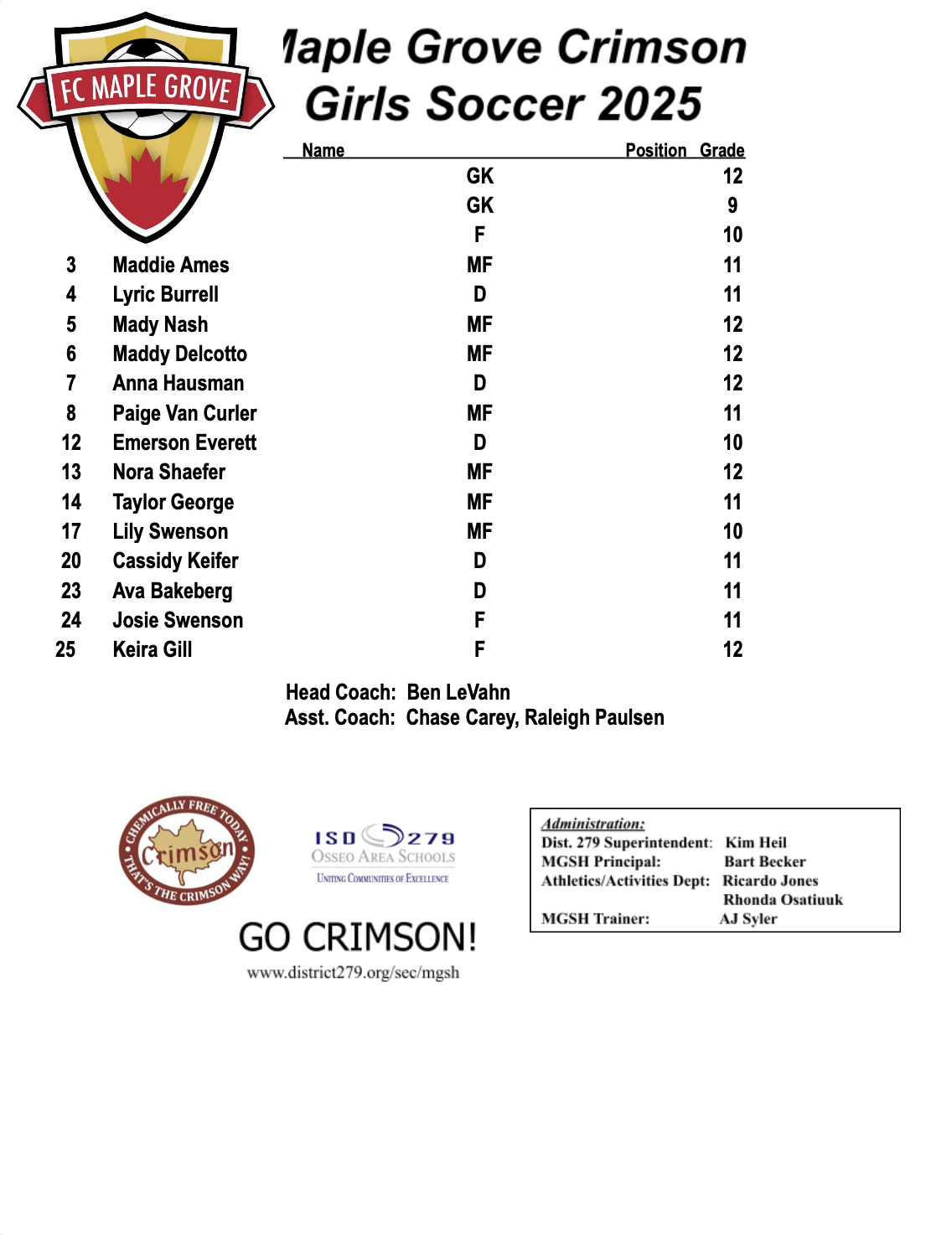 Maple Grove Girls Soccer Roster