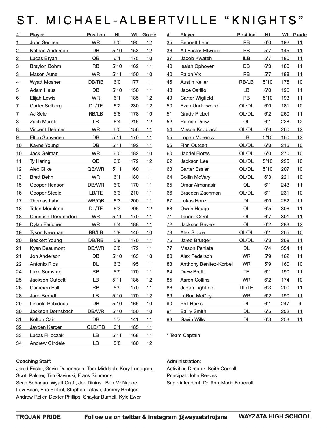 St. Michael-Albertville Football Roster